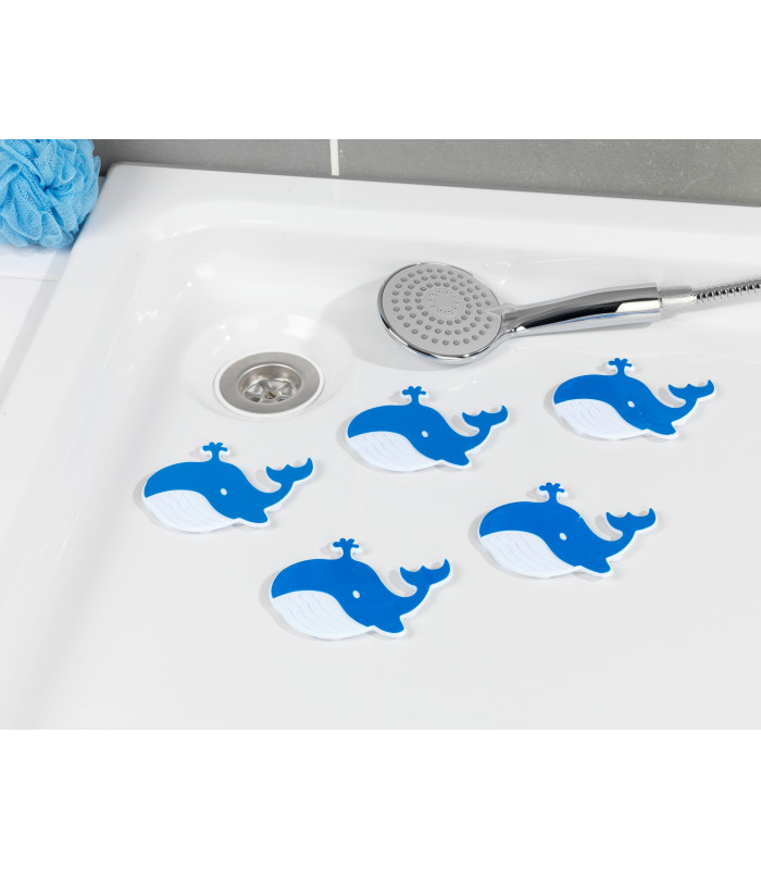 Sada 5 kusů protiskluzových nálepek do vany a sprchy ve tvaru velryby. Dopřejte si koupání a sprchování bez rizika uklouznutí na mokrém povrchu!
