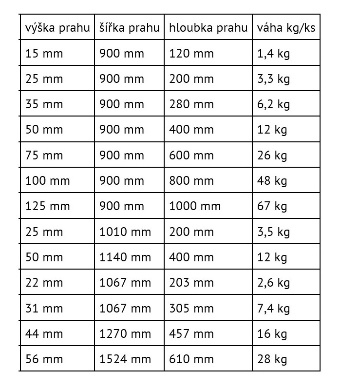 • rozměr: 106,7x20,3 cm, max.výška 22 mm