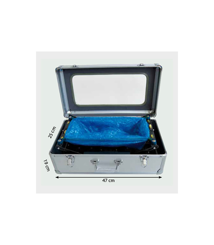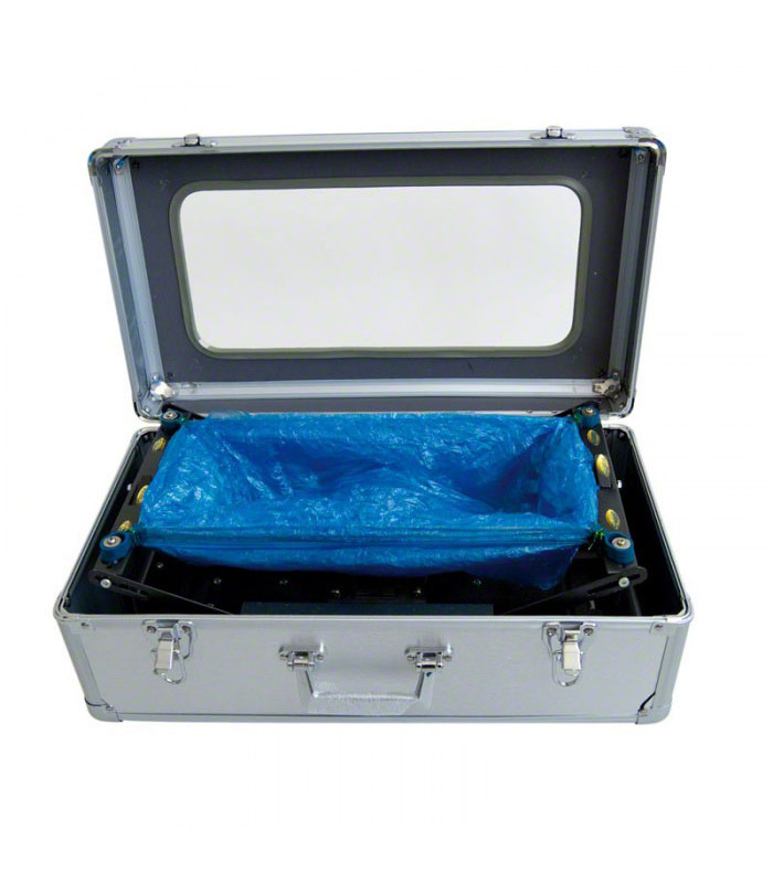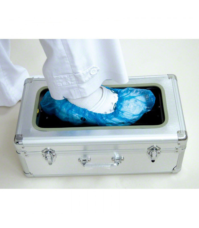 Box pro automatické navlékání ochranných návleků na boty. Pohodlné, rychlé a velmi hygienické navlékání bez nutnosti dotyku návleků a bot.
