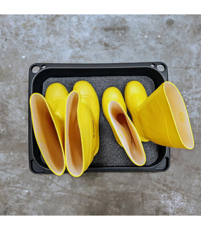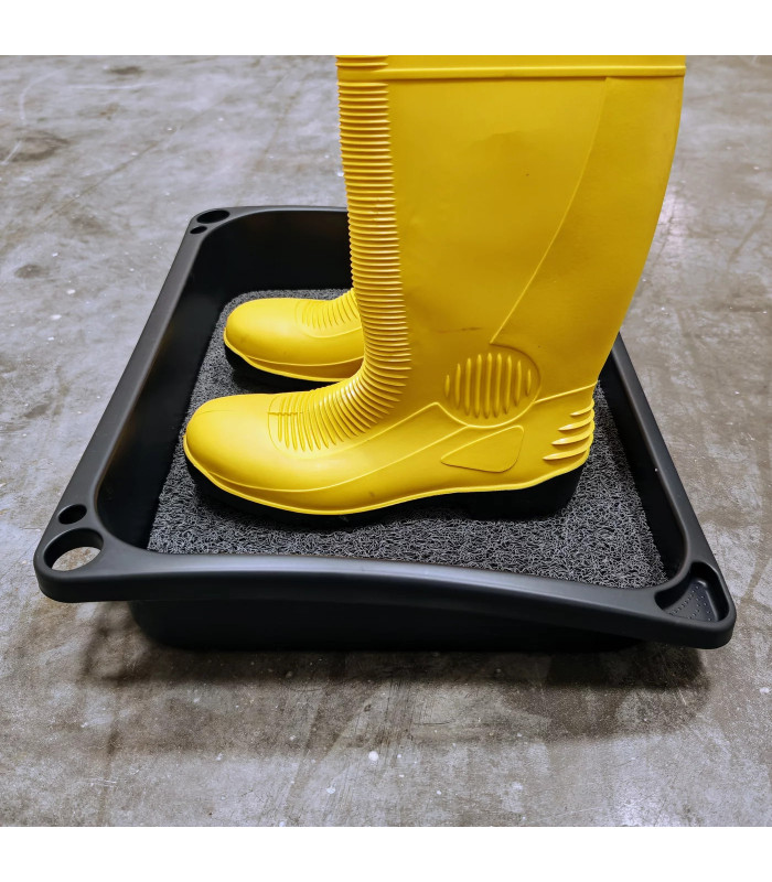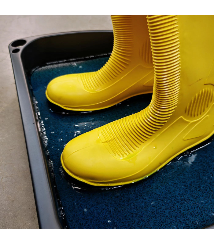 Díky promyšlené konstrukci je plastová vana ideální pro efektivní použití velkého množství dezinfekčního roztoku. Nižší přední strana umožňuje pohodlný nástup do vaničky, čímž minimalizuje riziko zakopnutí. Optimální výška vany zajišťuje efektivní čištění obuvi v dostatečném množství dezinfekce. Masivní lem vaničky usnadňuje její uchopení a přemisťování.