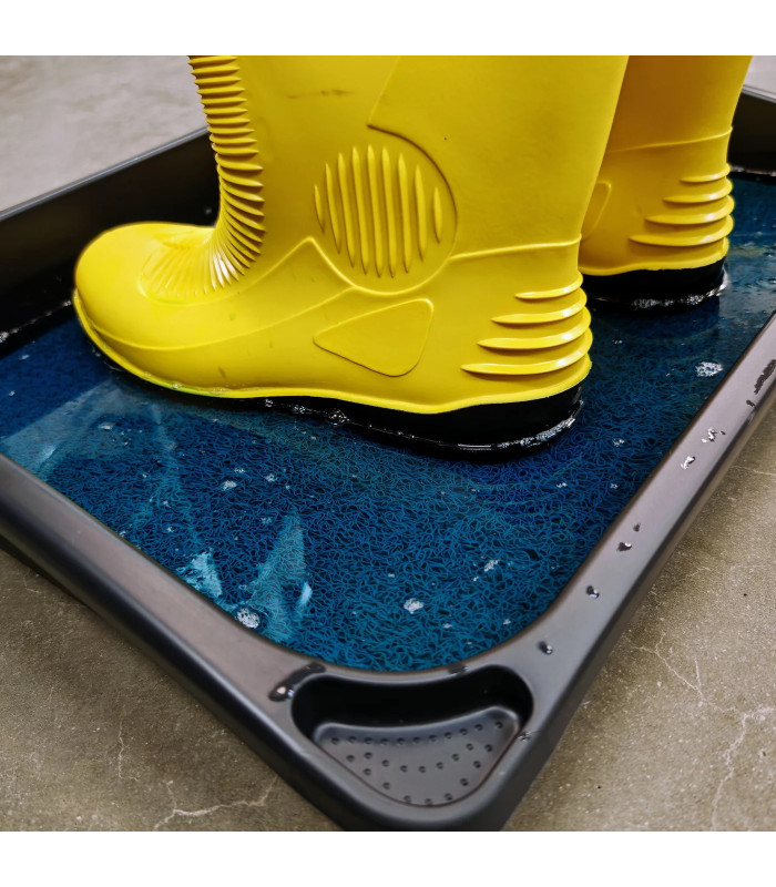 Použití: Odolná plastová vana s integrovanou dezinfekční rohoží je efektivním řešením pro hygienickou dezinfekci obuvi a podrážek. Vysoká mechanická a chemická odolnost materiálu zajišťuje dlouhou životnost a spolehlivou ochranu v různých provozech, jako jsou zdravotnická zařízení, potravinářské podniky, zemědělské provozy nebo vstupní prostory firem a domácností.