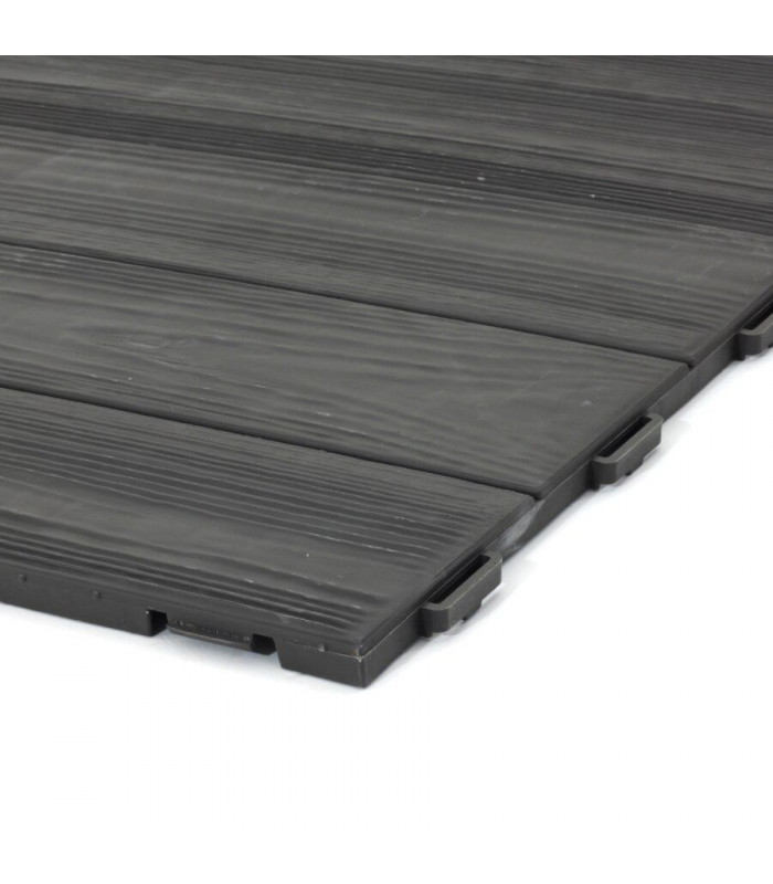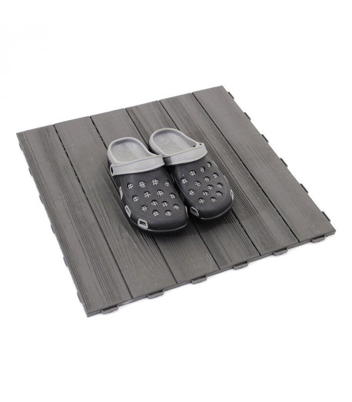 Polypropylenová dlaždice s dezénem imitující dřevo, vhodná pro venkovní i vnitřní prostředí. Ideální použití na podlahy okolo bazénů, koupališť, balkónech, terasách, zahradách.