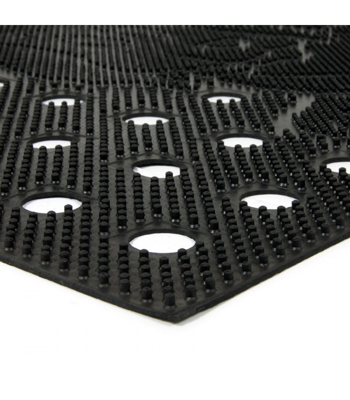 Malá gumová vstupní kartáčová čisticí rohož na drobné nečistoty. Dlouhá životnost, snadné čištění, estetický doplněk ideální pro majitele psů. Použití v exteriérech.