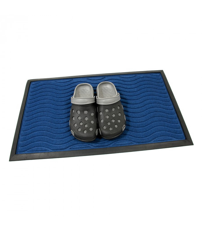 Modrá textilní gumová čisticí vstupní rohož na drobné nečistoty. Velká odolnost, dlouhá životnost, lehká údržba. Použití v interiérech i exteriérech.