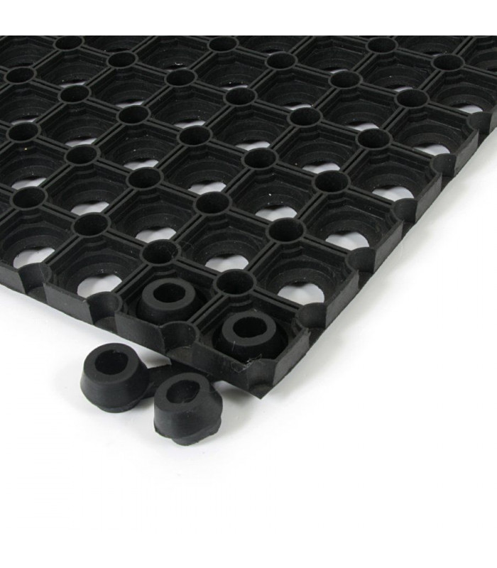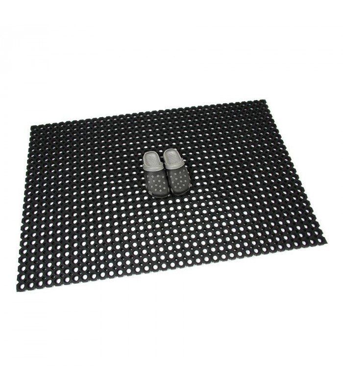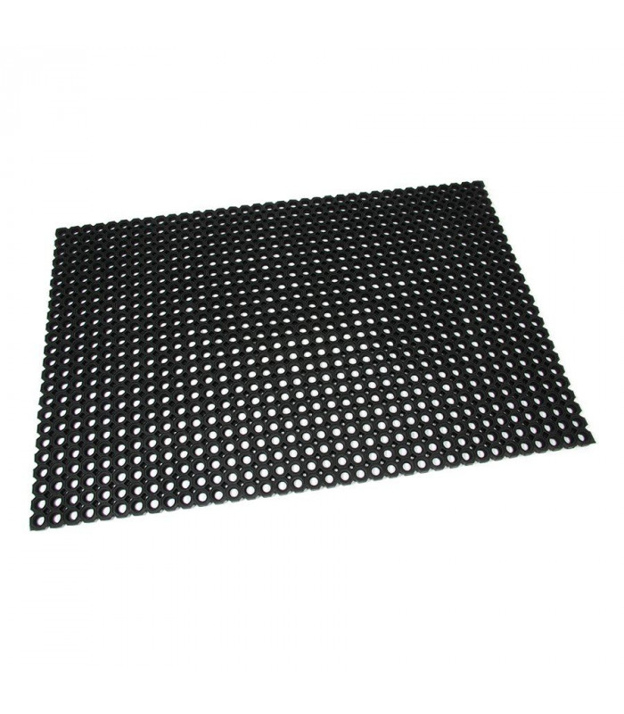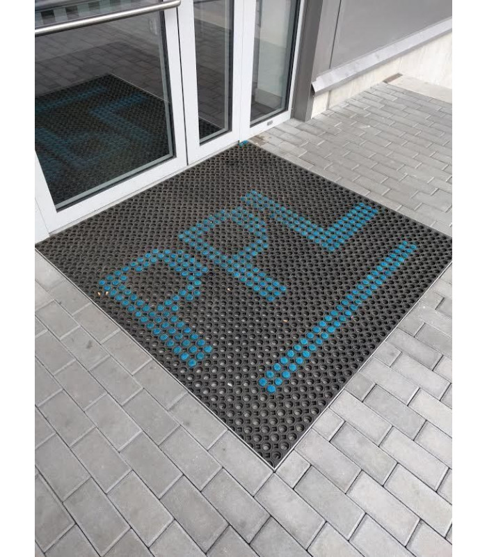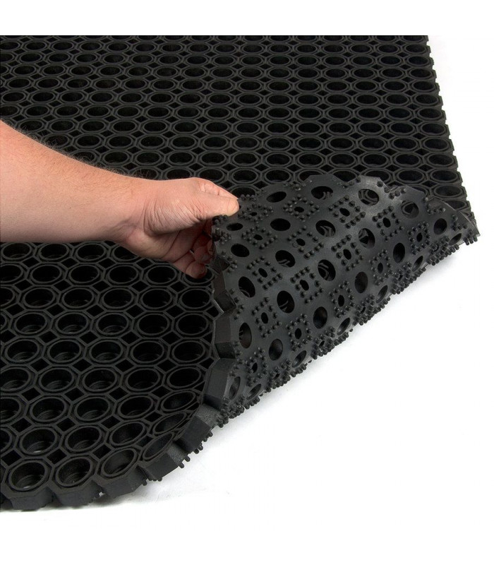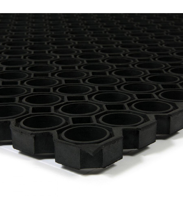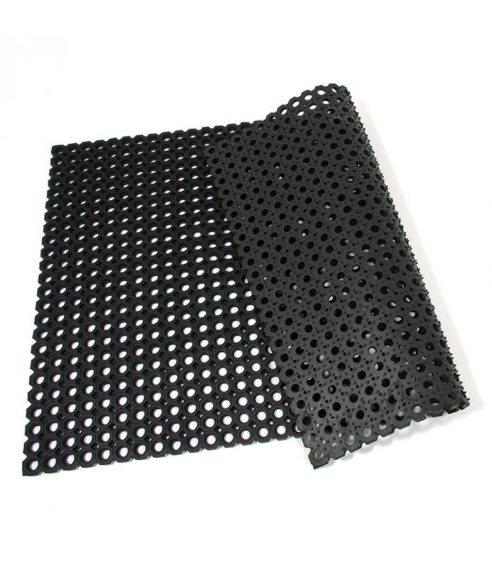 Velmi odolná čistící vstupní gumová rohož tvořená osmiúhelníkovými otvory pro odstranění hrubých nečistot jako jsou sníh, bahno a písek.