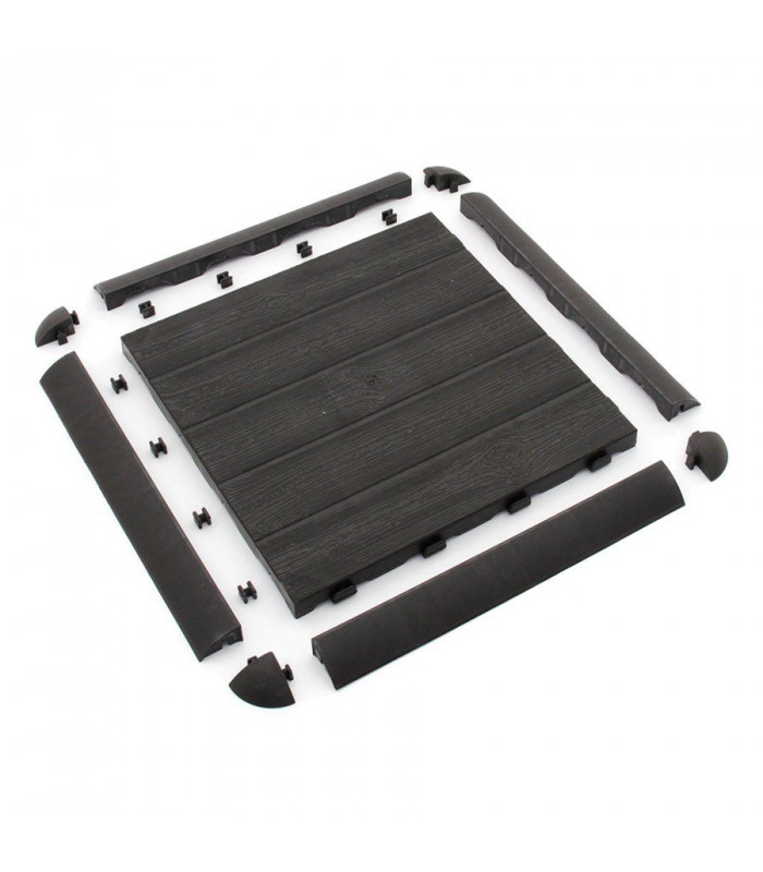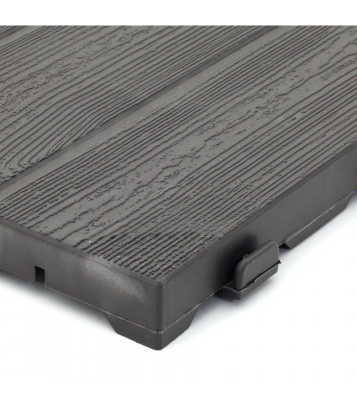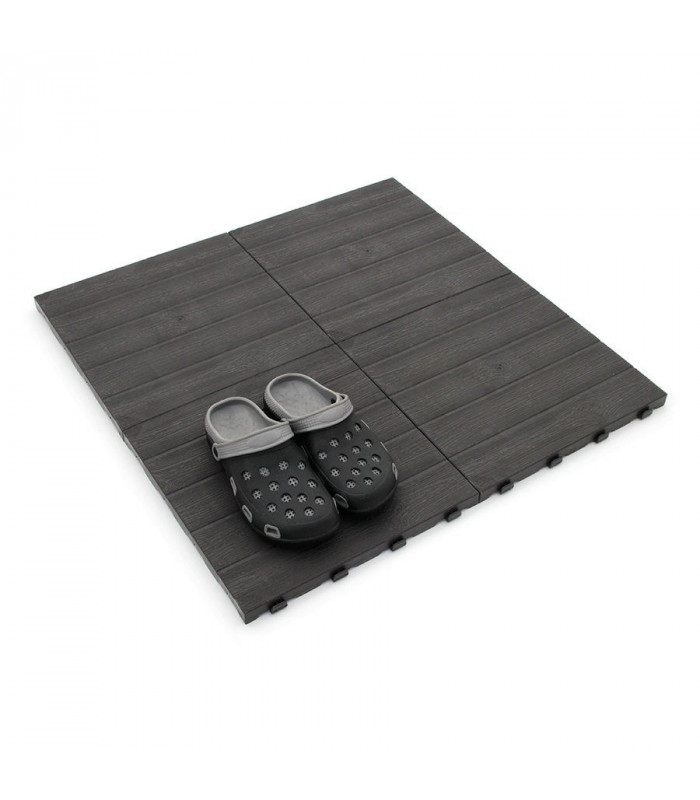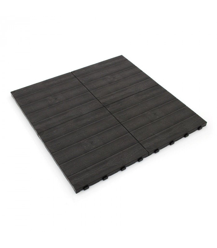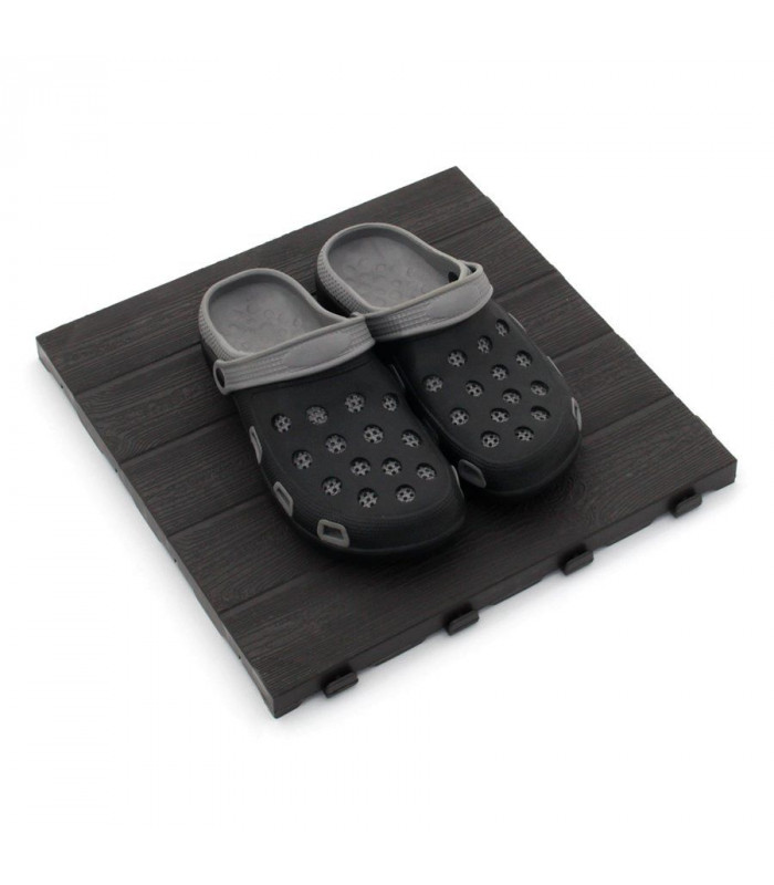 Polypropylenová dlaždice s dezénem imitující dřevo, vhodná pro venkovní i vnitřní prostředí. Ideální použití na podlahy okolo bazénů, koupališť, balkónech, terasách, zahradách.