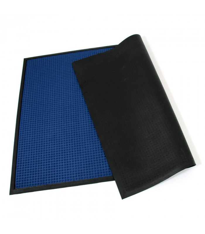 Modrá textilní gumová čisticí vstupní rohož na drobné nečistoty. Velká odolnost, dlouhá životnost, lehká údržba. Použití v interiérech.