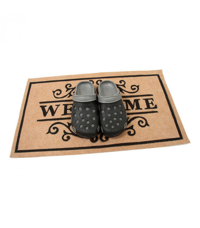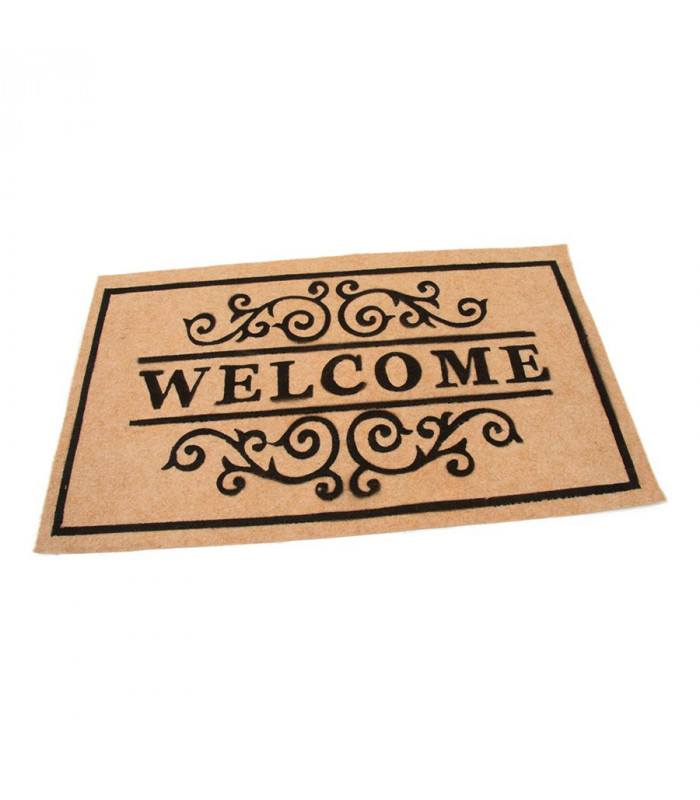 Základní verze textilní rohožky s motivem WELCOME v béžové barvě. Ideální rohožka před dveře bytu a kanceláře. Vhodná pro malé zatížení.