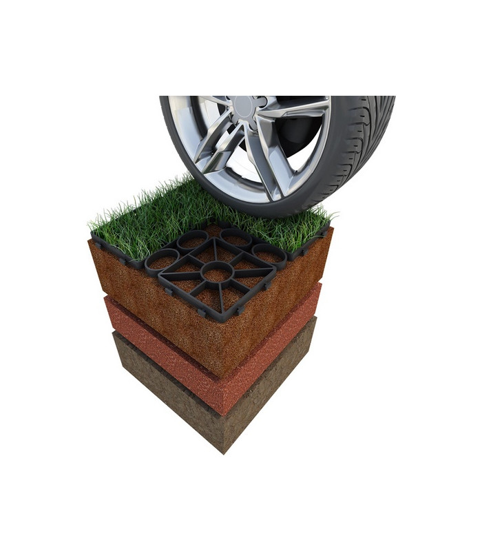 Zatravňovací dlaždice s jednoduchou pokládkou bez nutnosti přípravy podkladu. Chrání trávník před poškozením a zpevňují podklad. Možno použít na již existující trávníky.